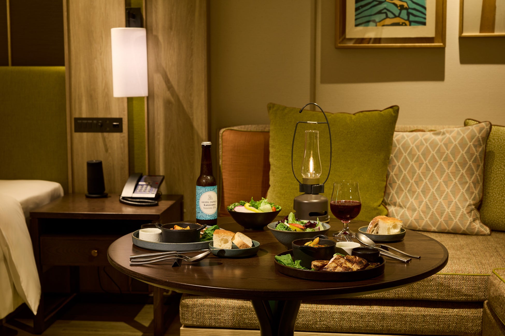 お食事は、1日目はインルームダイニングディナー。レストランの営業時間を気にせず、お部屋でゆっくりとディナーをお楽しみいただけます。2日目は、オールデイダイニング「KAGARIBI」の朝食ビュッフェと、ディナーコース、3日目は朝食ビュッフェが付きます。シェフが厳選した信州食材を使用した薪火イタリアンをオールデイダイニング「KAGARIBI」のスタイリッシュな空間でご堪能ください。ご朝食ビュッフェは、ランチのパスタセットに変更可能ですので、旅のスケジュールに合わせて、食事の時間や内容をセレクトしていただけます。(朝食ビュッフェをランチのパスタセットに変更する場合には、前日までにご予約が必要です)
