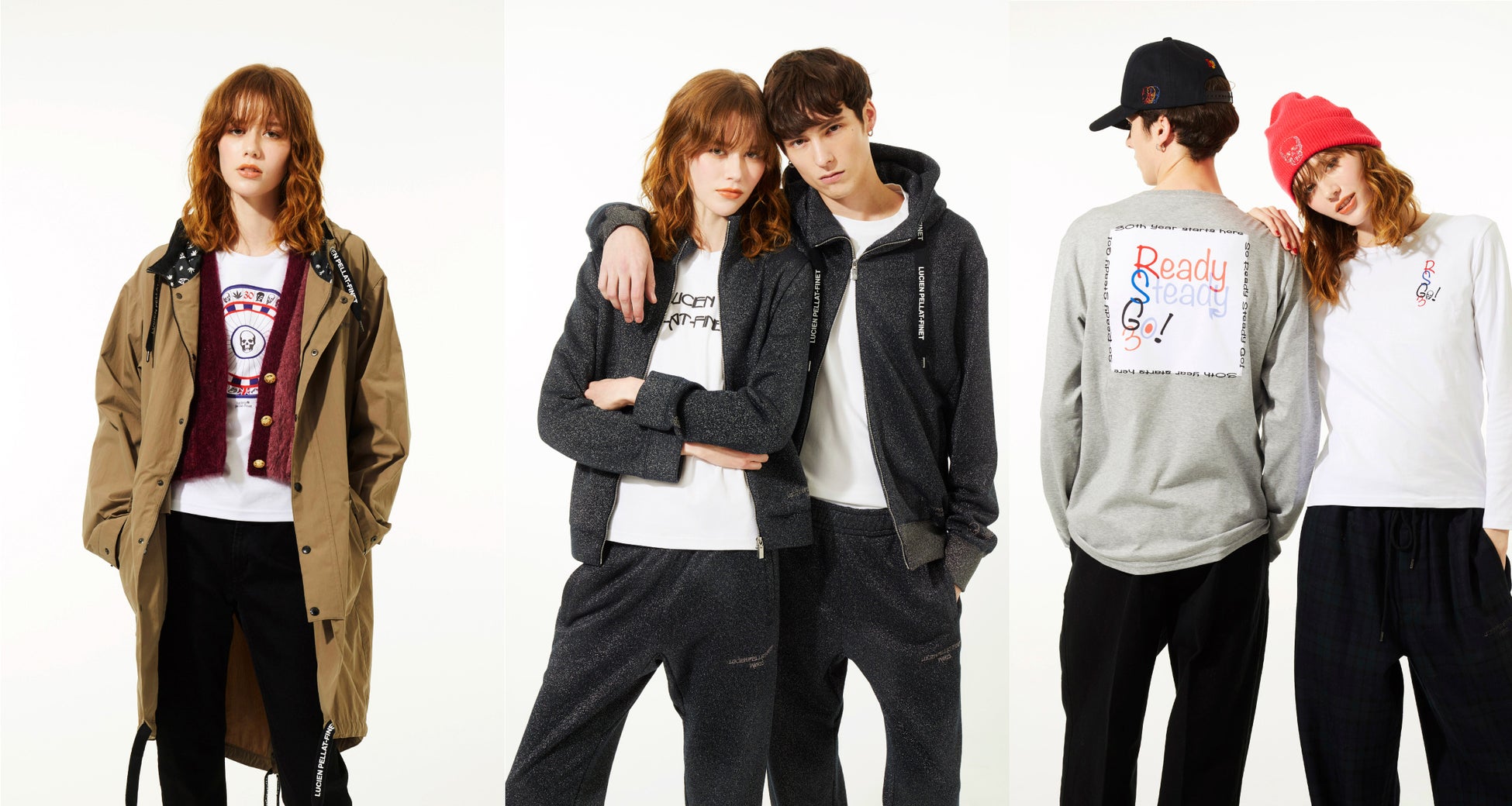 新作Tシャツには 、今シーズンのキーワードの1つでもある「READY STEADY GO!!」をパッチワークで背中に施したデザインや、30周年を迎えたルシアンぺラフィネのアニバーサリーアイテムと言える、ルーレットに30の歴代モチーフを配置したスペシャルピースが登場。素材は、肌触りの良いスピンコットンと、貴重な綿種の“エジプト綿”が使用され、カシミアのようなやさしい風合いとシルクのような美しい光沢が特徴です。