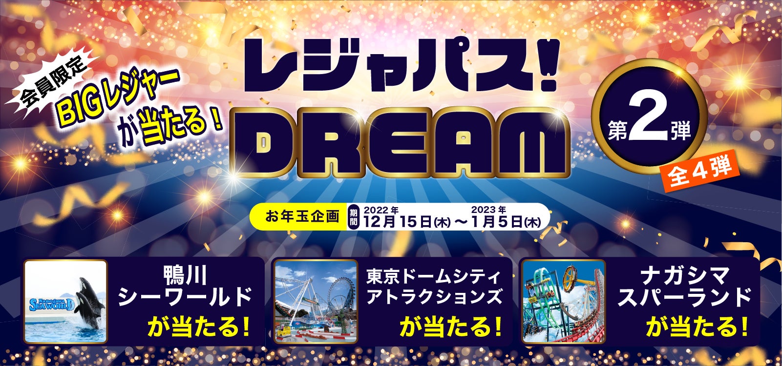 レジャパスから【ビッグなお年玉】 「レジャパスDREAM」第2弾開催 ー豪華レジャー施設チケットが家族全員分当たる!ー