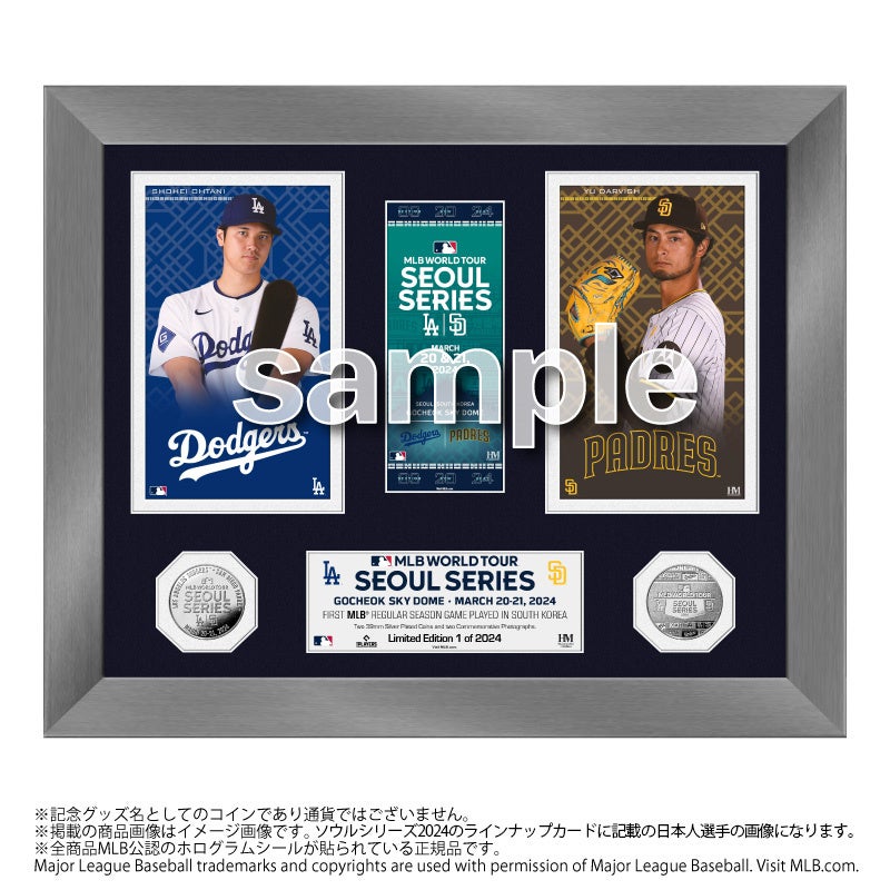 ドジャース 大谷翔平、パドレス ダルビッシュ有らの写真と、ソウルシリーズの大会ロゴがデザインされたプレミアムコインが付属いたします。