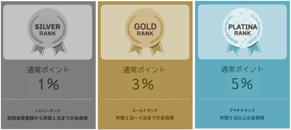 年間2泊すれば、ゴールド会員へアップ、5泊以上でプラチナ会員になる為大変ランクアップしやすい設定になっています。