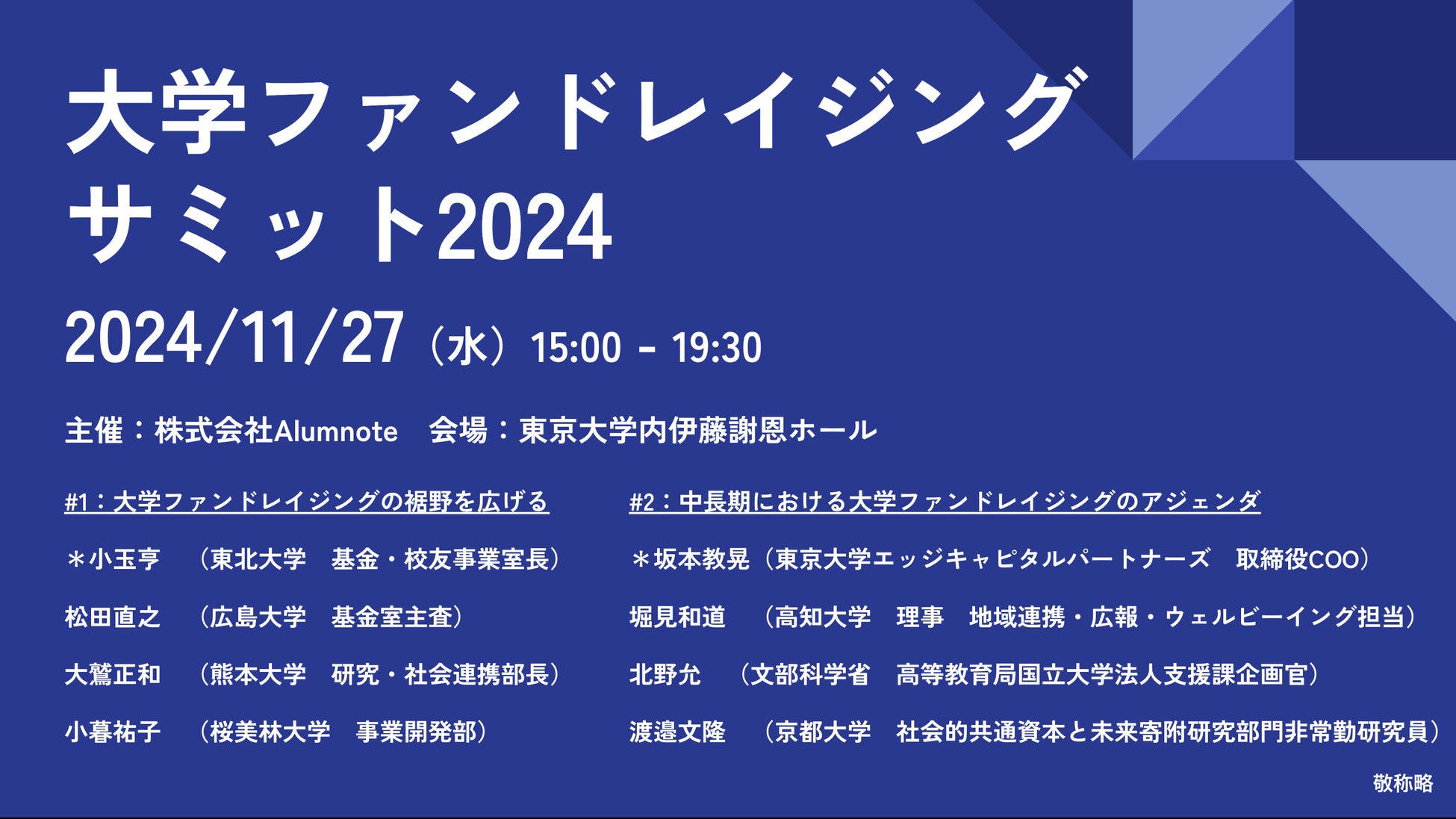 Alumnote主催、大学の資金調達について産学官が共に議論する「大学ファンドレイジングサミット2024」開催決定