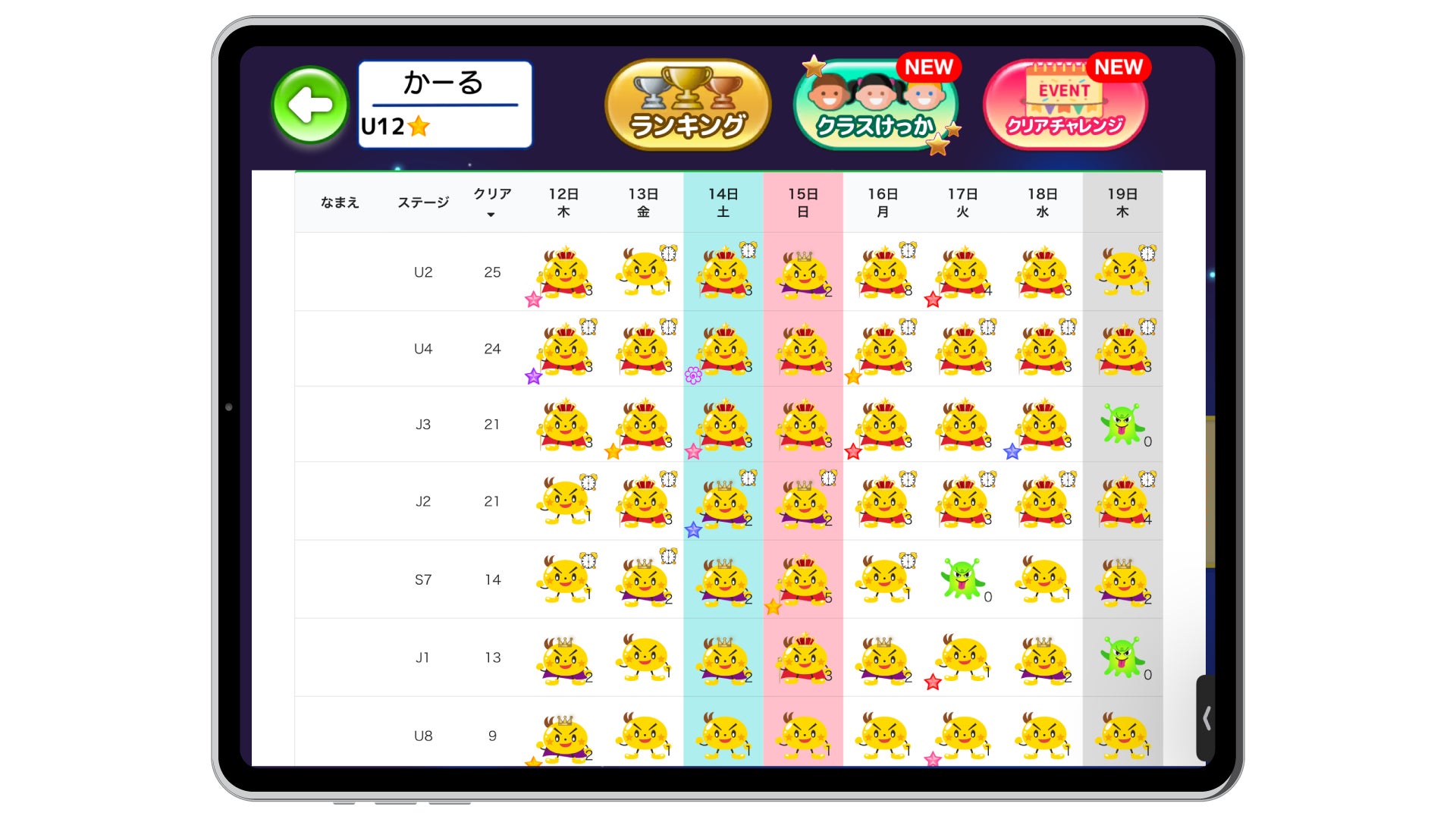 教室で活用している子ども同士の学習内容がわかる機能です。同じ目的で学習する子ども達にとってやる気を引き起こす教室でも人気の機能です。