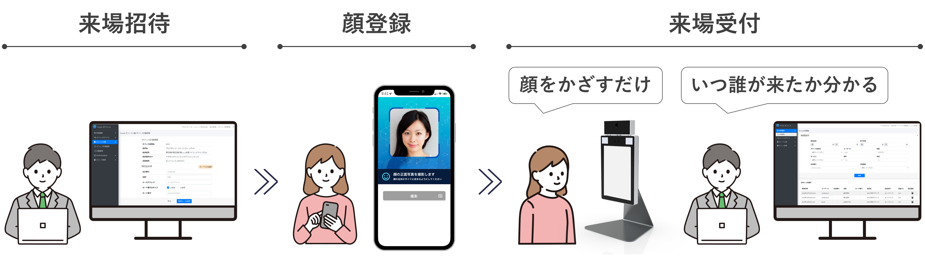 今回、『LIVIO Life Design! SALON』には、顔をかざすだけで検温と受付を同時に完了できる、顔認証受付サービスを採用頂きました。オンラインとオフラインの体験を垣根なく繋ぐOMO(Online Merges with Offline)により新たな顧客体験を創出する本サロンに導入頂くことで、シームレスな来場体験と受付の業務効率化を実現します。
