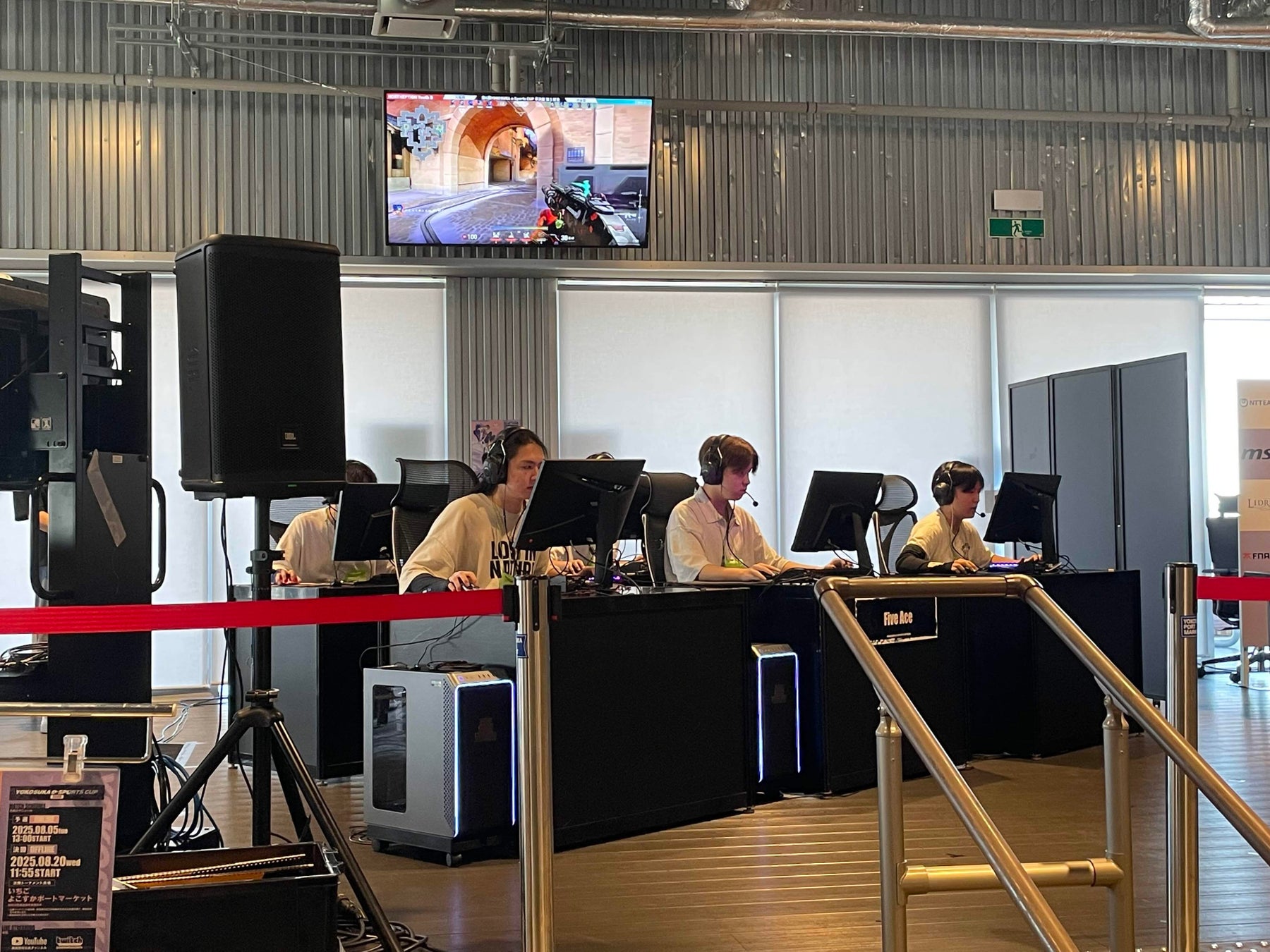 まずは4つに分かれたブロック予選が2025年8月5日にオンラインで行われました。そして各ブロックで勝ち上がった4チームが8月20日にいちご よこすかポートマーケットにてオフラインで決勝大会を行い、eスポーツ高等学院の生徒のチーム「RAFX dreams」が準優勝、「Five Ace」が3位という好成績を収めることができました。