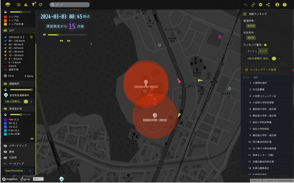 この技術は、能登半島地震の発生時においても有効に活用されました。徳洲会グループの特定非営利活動法人TMATや、日本赤十字看護大学附属災害救護研究所との連携の下で日本赤十字社へ提供することで、初動部隊の現地入りルートの検討や、被災自治体の災害対策本部における孤立地域ならびに自主避難場所の現状把握や情報共有に加えて、各避難所への訪問の優先順位付けなどの具体的な救援活動に活用されました。