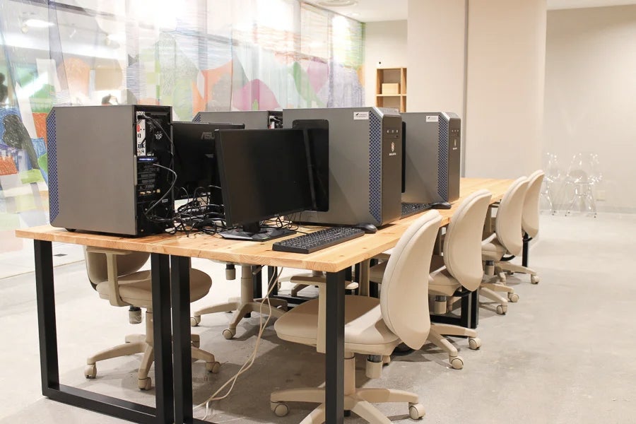 ドットワークPlusに隣接する施設。高性能PCが用意されている。複数メンバーが集まって行う合宿・キックオフミーティング時に活用。IT人材育成講座が随時開催されているため、自身のスキルアップ目的のために利用することも可能。