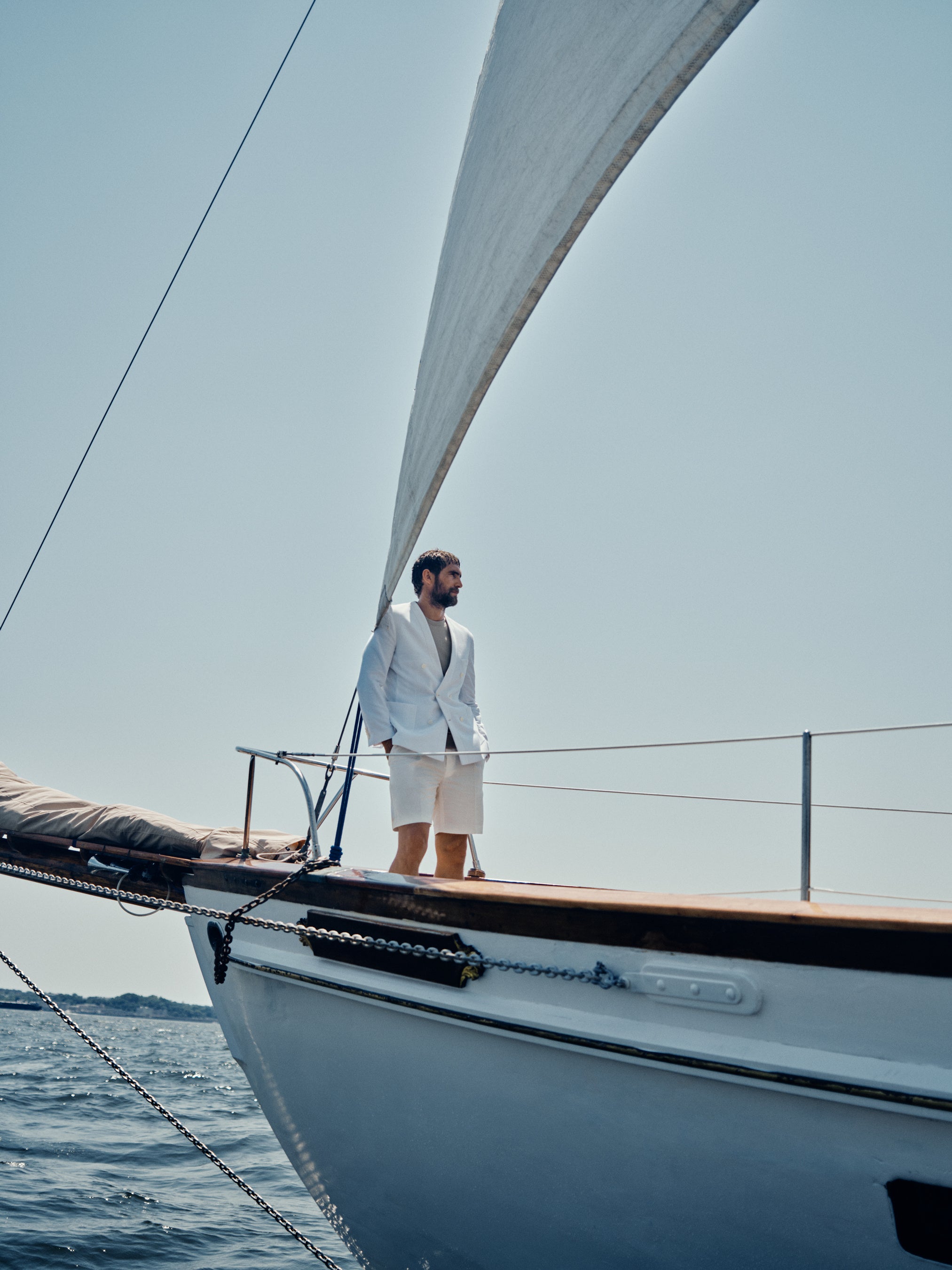 テーラードショーツ、ノーティカルモチーフのプリントシャツ、ニットポロ、リラックスフィットのドローストリングトラウザーズ、そして象徴的なウィンドブレーカーなど、幅広いアイテムが揃い、シルクシアサッカー、テクニカルリネン、上質なコットンなどの素材が、ブリオーニの卓越したクラフツマンシップにより、優れた通気性と軽さを実現しています。エスパドリーユやレザートリムのキャンバスバッグ、軽やかなキャップなど、細部にまでこだわったアクセサリーがコレクションを完成させます。