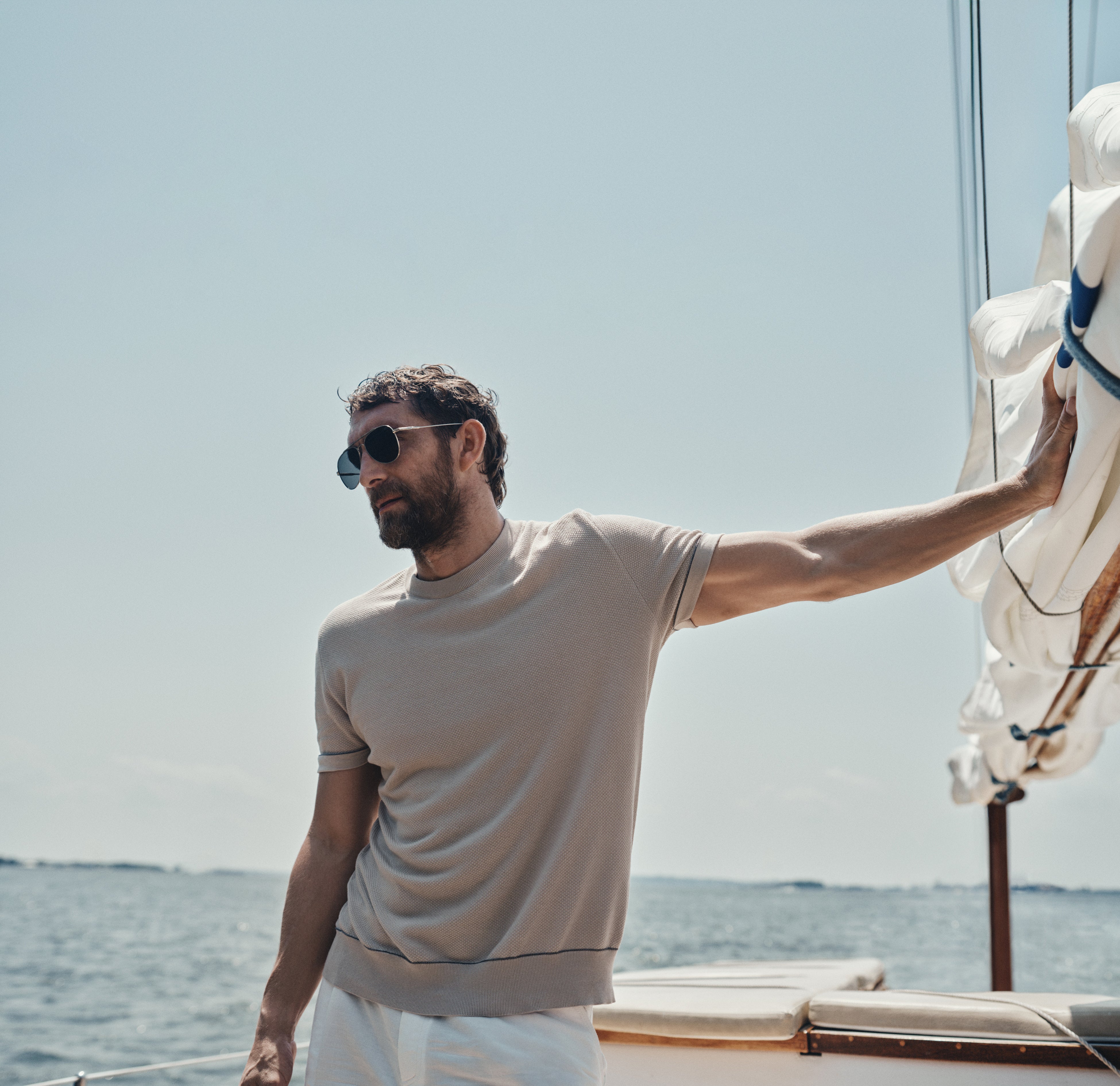 余暇の美学を讃える「RIVIERA」コレクションは、2025年5月よりBrioni.comおよび一部のブリオーニストアにて発売いたします。