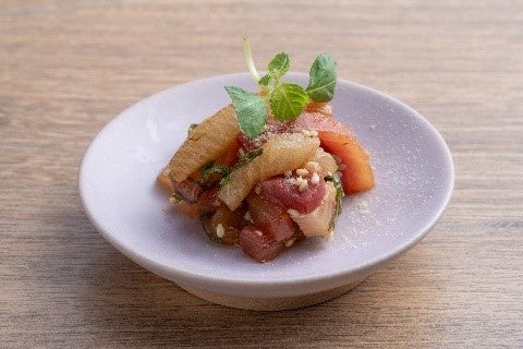 この「熟成こうじパウダー」 認知拡大のために、京都・梅小路公園沿いに位置する人気ホテル 「梅小路ポテル京都」とのコラボレーションを実施。期間限定で、「熟成こうじパウダー 」を使用したオリジナルメニューを、同ホテル内レストラン のコース料理 "Potel Style Kaiseki(ポテルの会席)" にて 提供いたします。今回のコラボイベントに合わせて、梅小路ポテル京都の総 料理長・関 晴信 様が3種類のオリジナルメニューを開発。「熟成こうじパウダー」の「コク味」、「味の深み」を実感いただけるメニューとなっています。