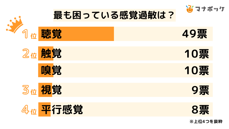 最も困っている感覚過敏、第1位は「聴覚」2位「触覚・嗅覚」3位「視覚」という結果に。また具体的なエピソードを調査しました。