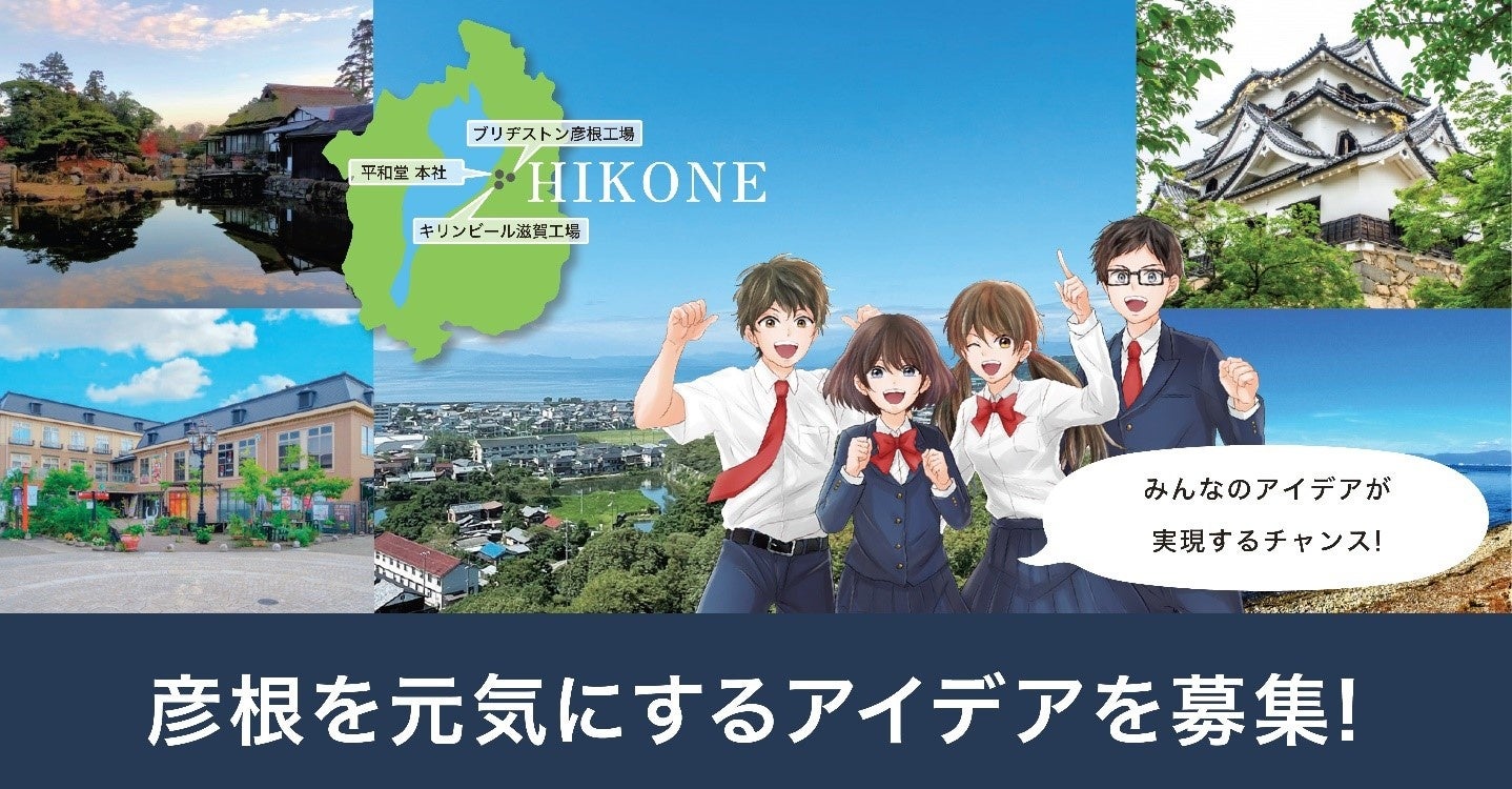 株式会社平和堂、キリンビール株式会社(滋賀工場)、株式会社ブリヂストン(彦根工場)は、「彦根発 笑顔いっぱいプロジェクト」の取り組みとして、彦根がより元気に活気あふれる街になることを目的として、彦根が抱える社会課題を解決できるアイデアを高校生から募集しますのでお知らせいたします。
