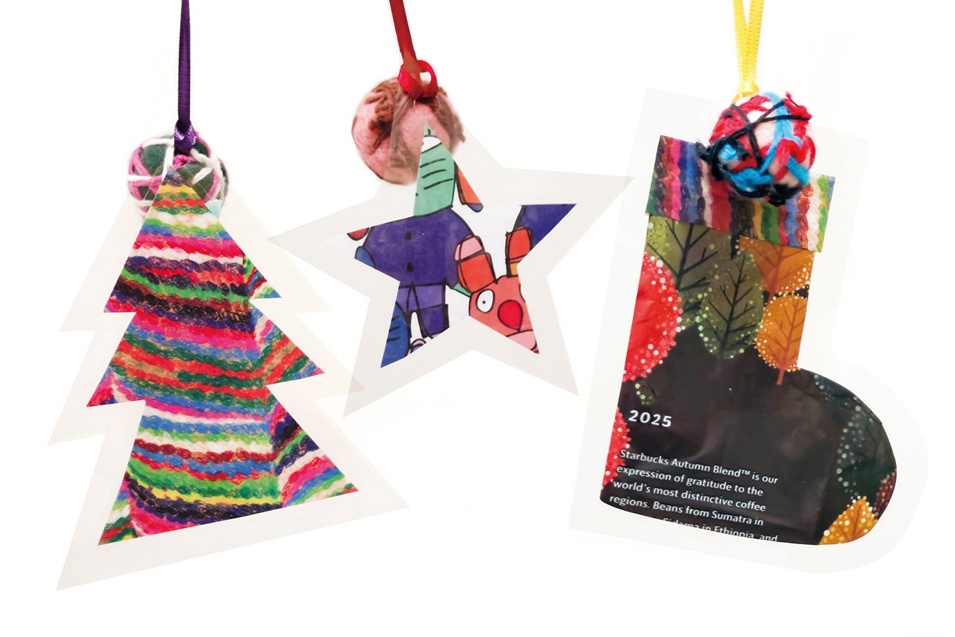 シブヤフォントのスタンプを使ってオリジナルのグリーティングカードやコーヒーの袋をアップサイクルしたクリスマスオーナメントを作ってみましょう。
