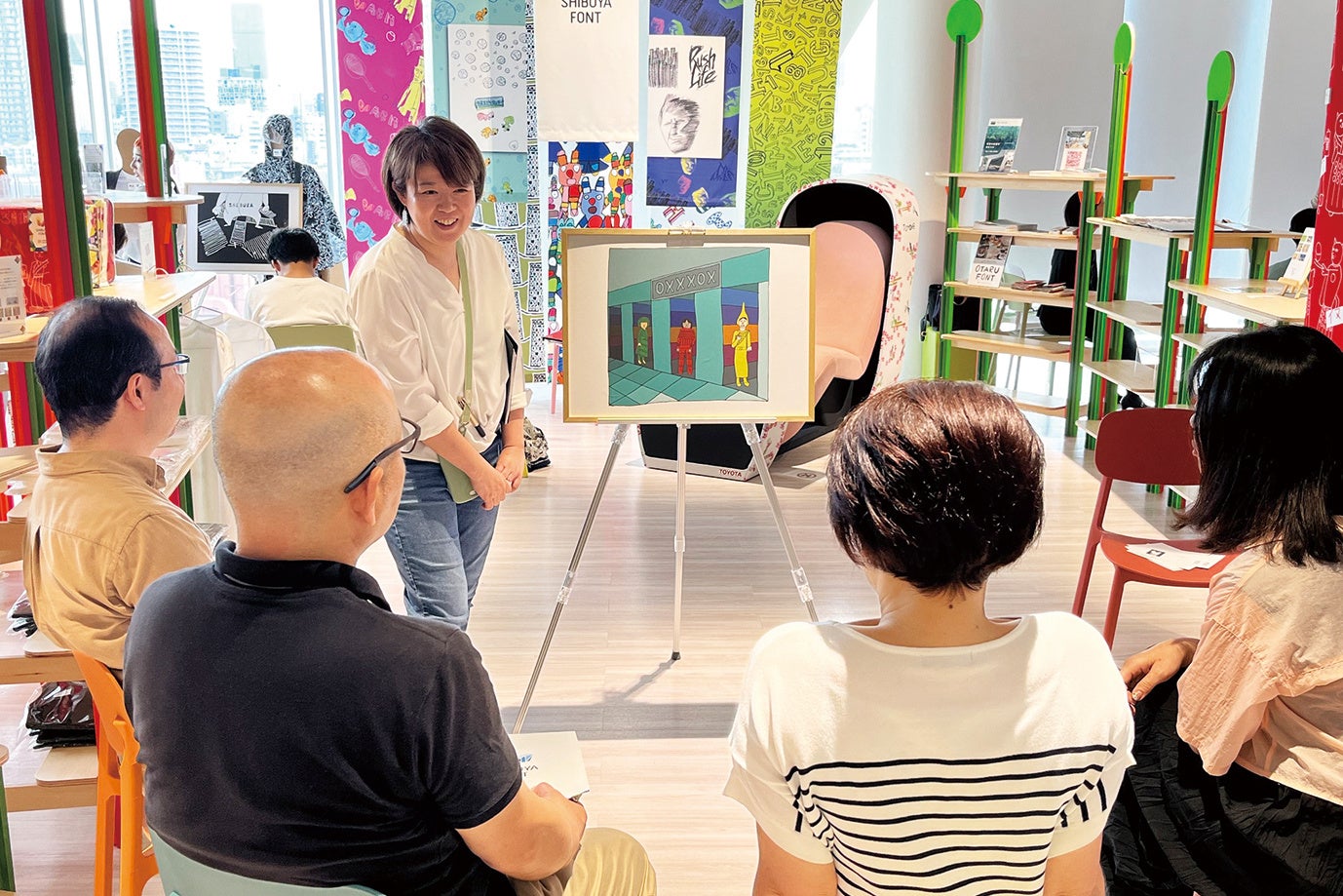 作品を見ながら、目に映ったもの、発見、 想像したことなど、思いつくまま気軽におしゃべりをしながら鑑賞する「対話型アート鑑賞」。シブヤフォント認定ファシリテーターがガイドする、シブヤフォントのアートを使った鑑賞プログラムは、子どもから大人まで年齢を問わずご参加いただけます。(各回先着10名まで)