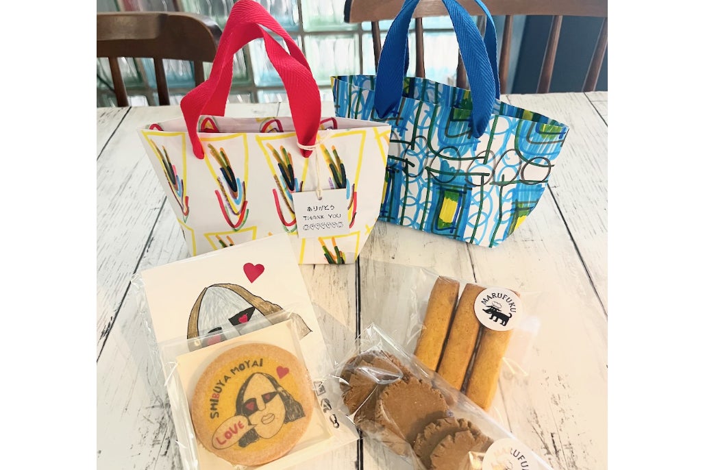 渋谷まる福のスイーツ(焼き菓子3個)を入れるバッグを自由にデザインして世界に一つのギフトバッグを作りましょう。