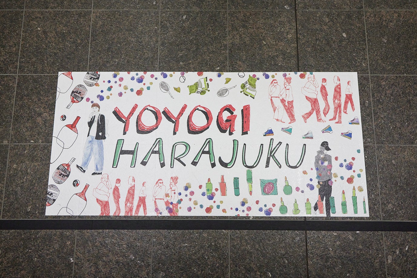 シブヤフォントで渋谷の風景を表現した、床面アートを展示します。フォント(文字)とパターン(絵)の魅力を最大限に生かした、床面アートをお楽しみください。