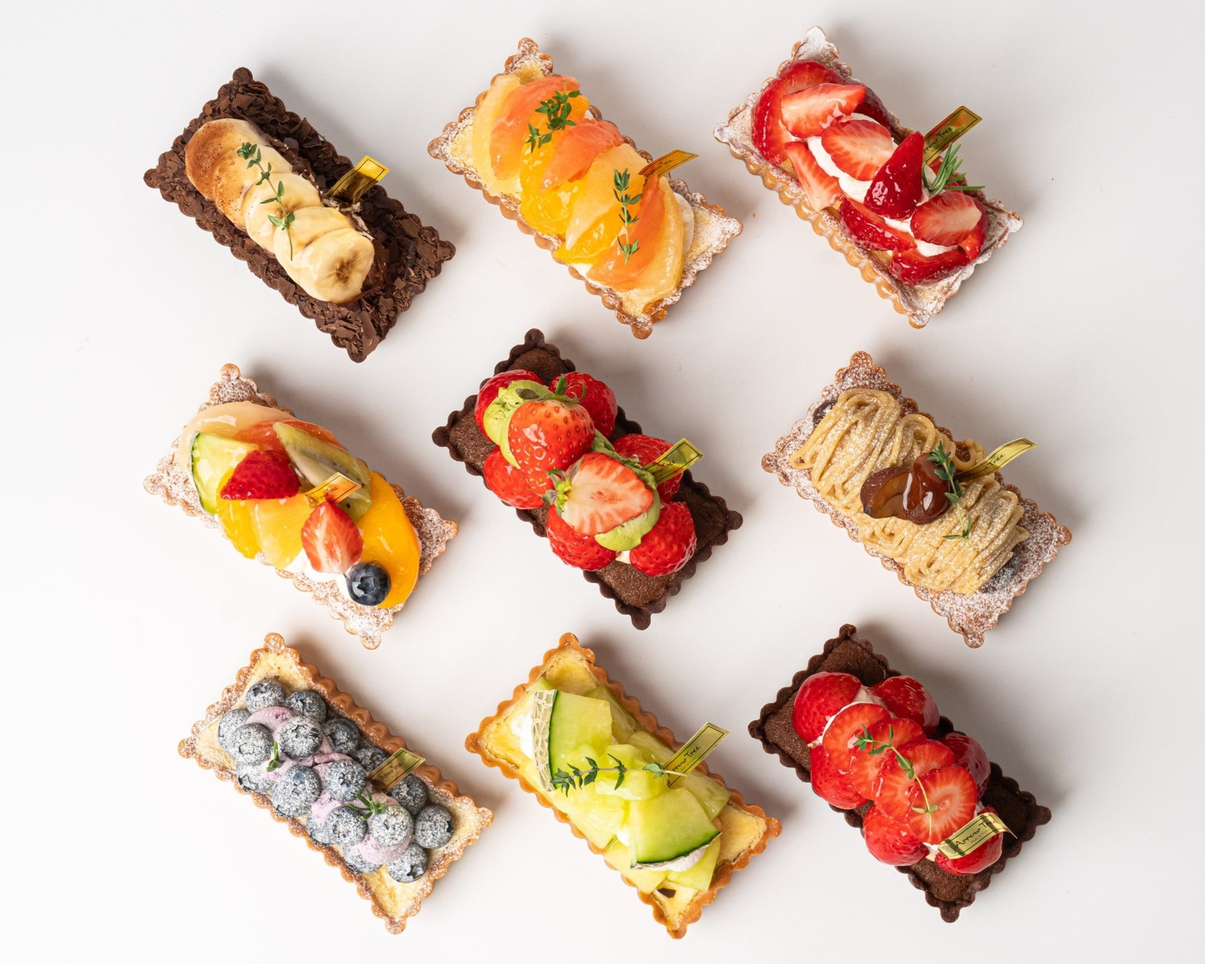 ARROW TREEの代名詞「フルーツタルト」を、従来の三角形ではなく視覚的にも楽しめる四角形のタルトを9種類販売。