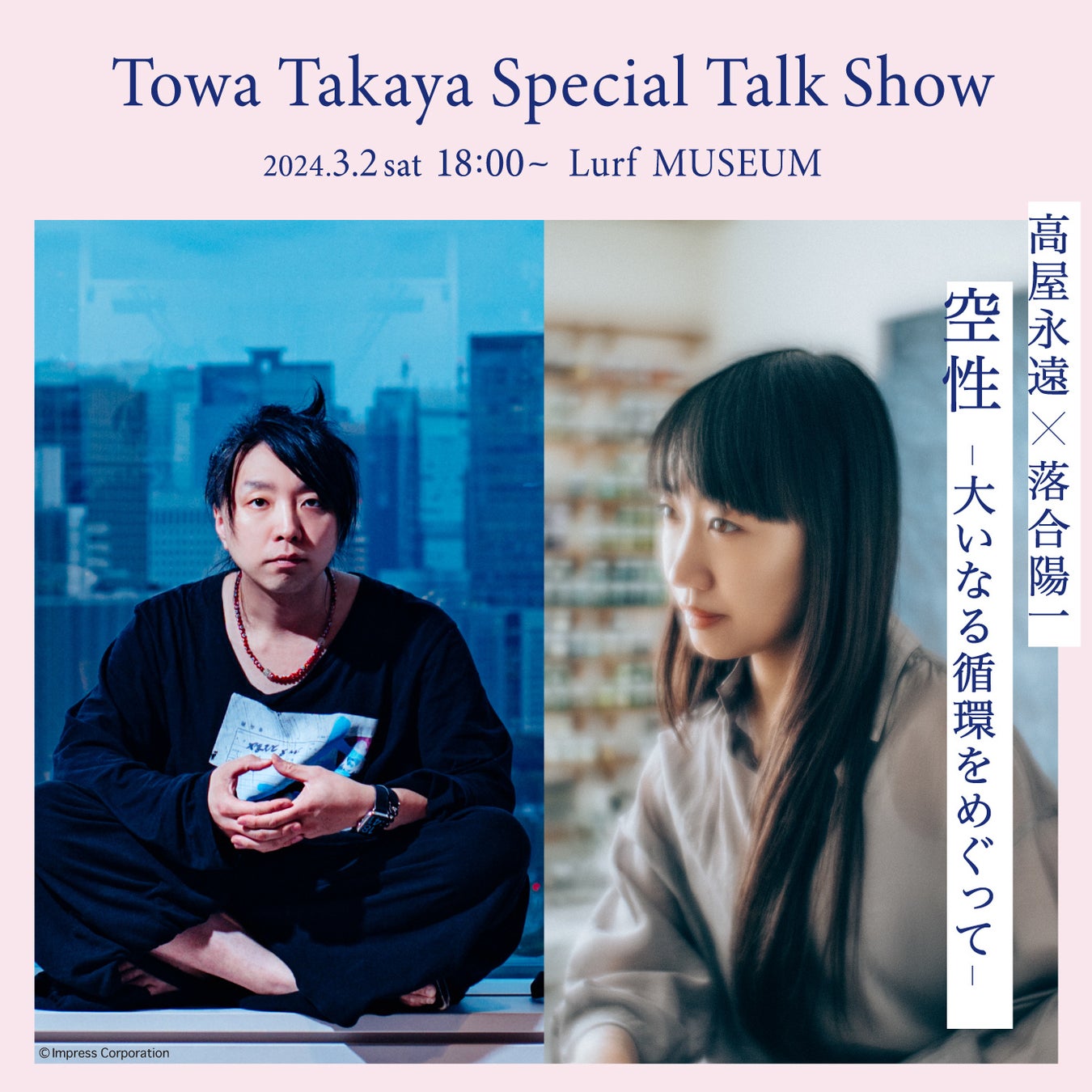 本展は高屋永遠が資生堂みらい研究グループとの共同研究から考案し、「化粧原料のパール剤を画材に用いた新手法」で描画した「罔象」シリーズの初公開となります。また、高屋の代表的な「青」「水」「万象」「桜」シリーズをはじめ、別府の血の池地獄から採取した泥から色材を抽出し、その地のエネルギーを取り込んだ作品まで、新作70点を展示した高屋永遠の最大規模となる個展です。また、本展に合わせて制作したTシャツをLurf MUSEUMの会場とオンラインストアにて販売いたします。 展示会期は2024年3月2日(土)~4月8日(月)まで。