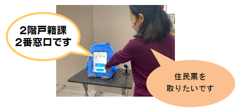 AI技術を活用した行政サービス案内の有効性を確認するため、実証実験を行います。タブレットに話しかけることにより、該当の窓口をご案内します。