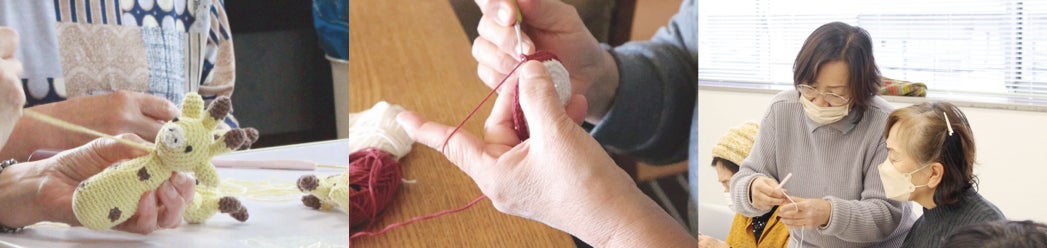 関西地域のシルバー人材センター会員様や、クラウドワーキングをサポートする社団法人の登録者様を中心に集まった、全国の女性の皆様に生産を依頼しています。毛糸や綿はすべて日本国内で生産されたものを使用し、各生産者は複数の講習会で技術を習得することで、全ての工程を日本国内で行っています。