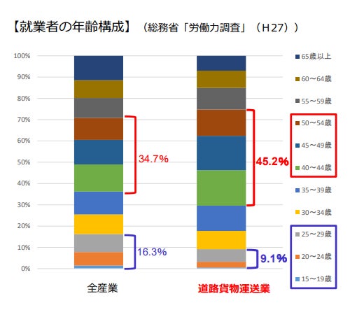 トラックドライバーの年齢構成を見ると、40代~50代が約45%を占め、現場は経験豊富なベテランドライバーによって支えられています。 しかし、「2024年問題」による労働時間の制約は、こうしたベテラン層にも「早く目的地に着かなければ」という心理的な焦りをもたらします。