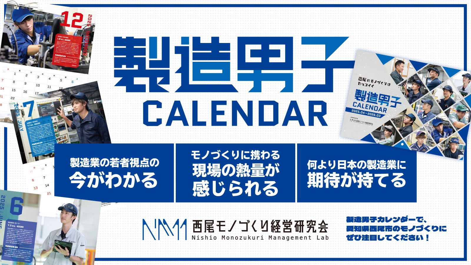 愛知県西尾市は、抹茶や養殖うなぎの産地として有名な自然豊かな地域であると同時に、全国屈指の工業出荷額を誇る「製造業のまち」でもあります。そんな西尾市の製造業経営者たちが西尾の製造業をもっと注目されるものとしたい。という思いを基に立ち上げた「西尾モノづくり経営研究会(モノ研)」。今回、製造業の魅力を全国に発信するため、「製造男子カレンダー2025」を制作しました。
