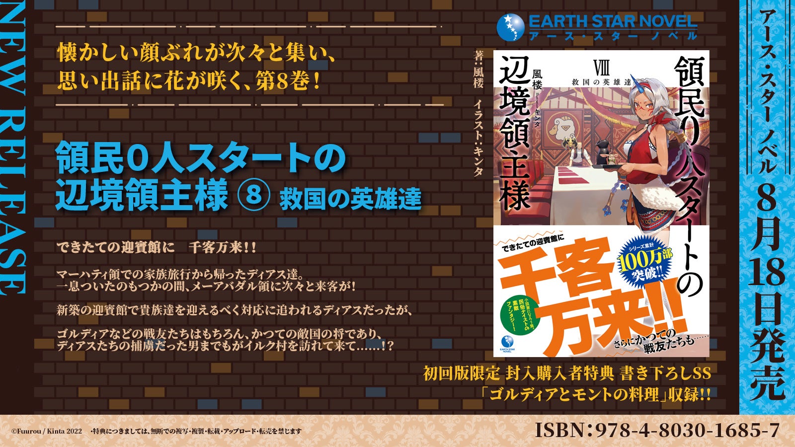 株式会社アース・スター エンターテイメント(東京都・品川区)が刊行する【アース・スターノベル】と【アース・スター コミックス】の人気作品『領民0人スタートの辺境領主様』が、このたびシリーズ累計100万部を突破いたしました。こちらを記念して、プレゼント企画満載のお祝い特設サイトを、原作ノベル最新第8巻発売日である本日8月18日(木)より公開いたしました。