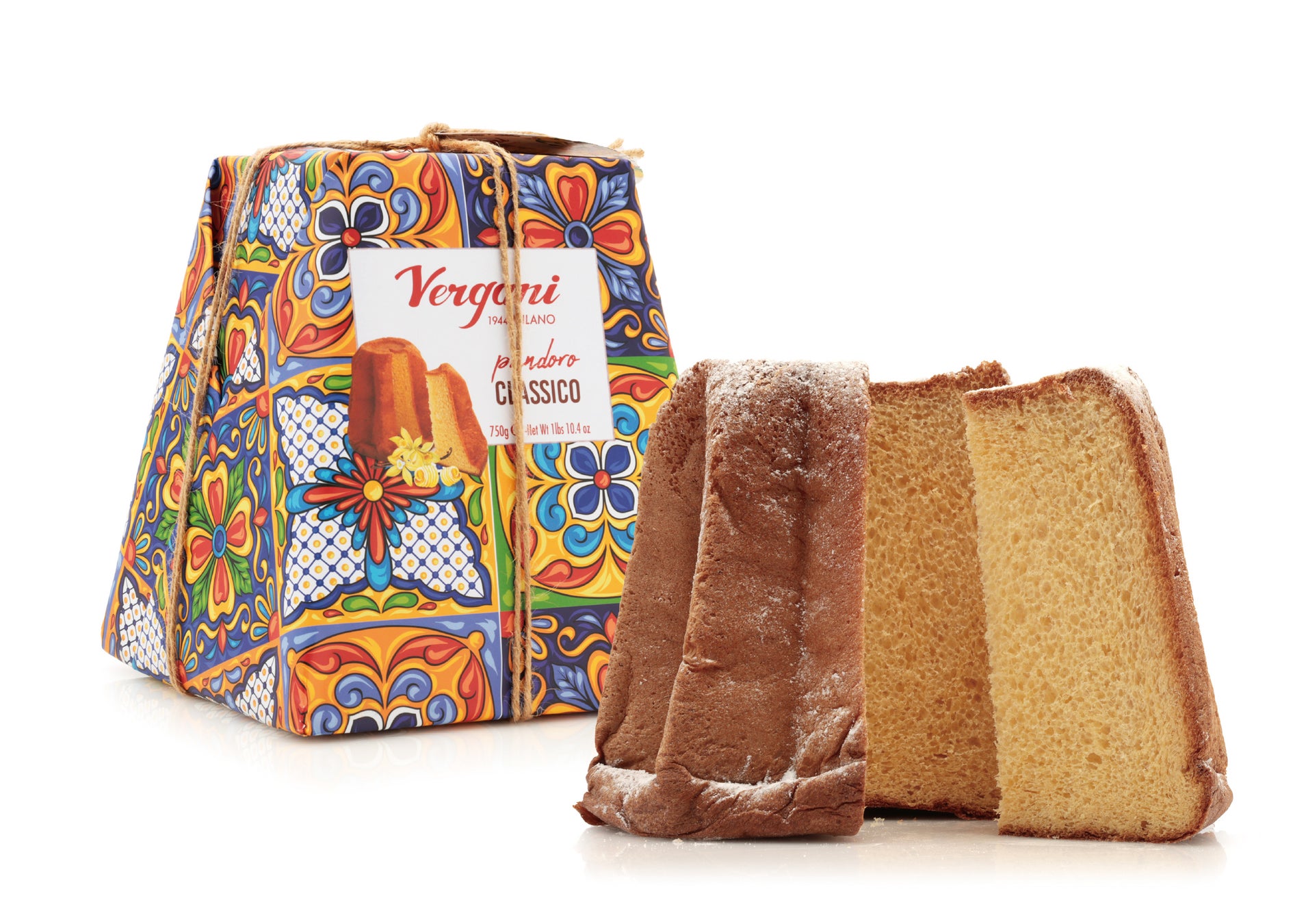 卵をたっぷり使用したパンドーロ生地にチョコレートチップを散りばめたパンドーロは、ヴェローナの伝統的な味をさらに美味しくアレンジした逸品。 ココアパウダー付き。