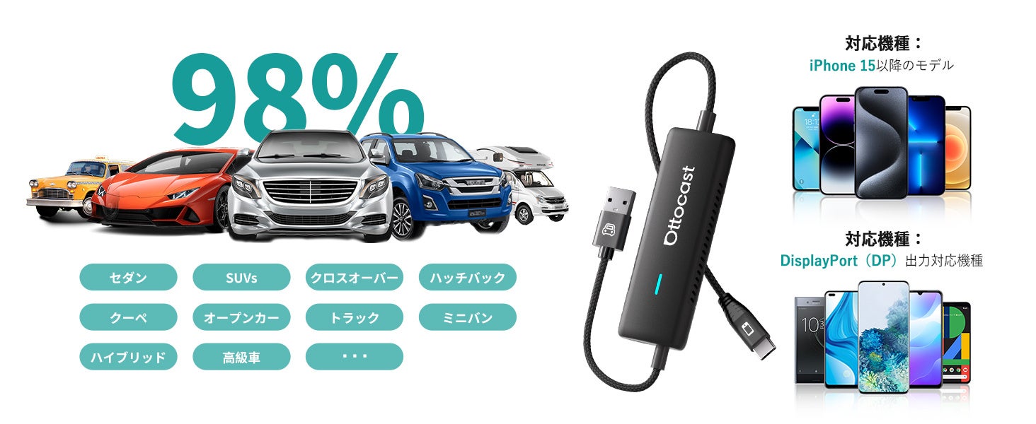 98%以上の有線CarPlayを搭載した車両と互換性があります。
