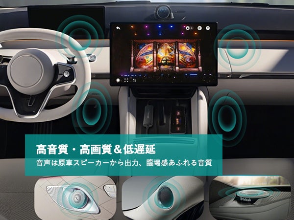 音声は純正カーオーディオから出力されるため、映画や音楽も臨場感たっぷり。
