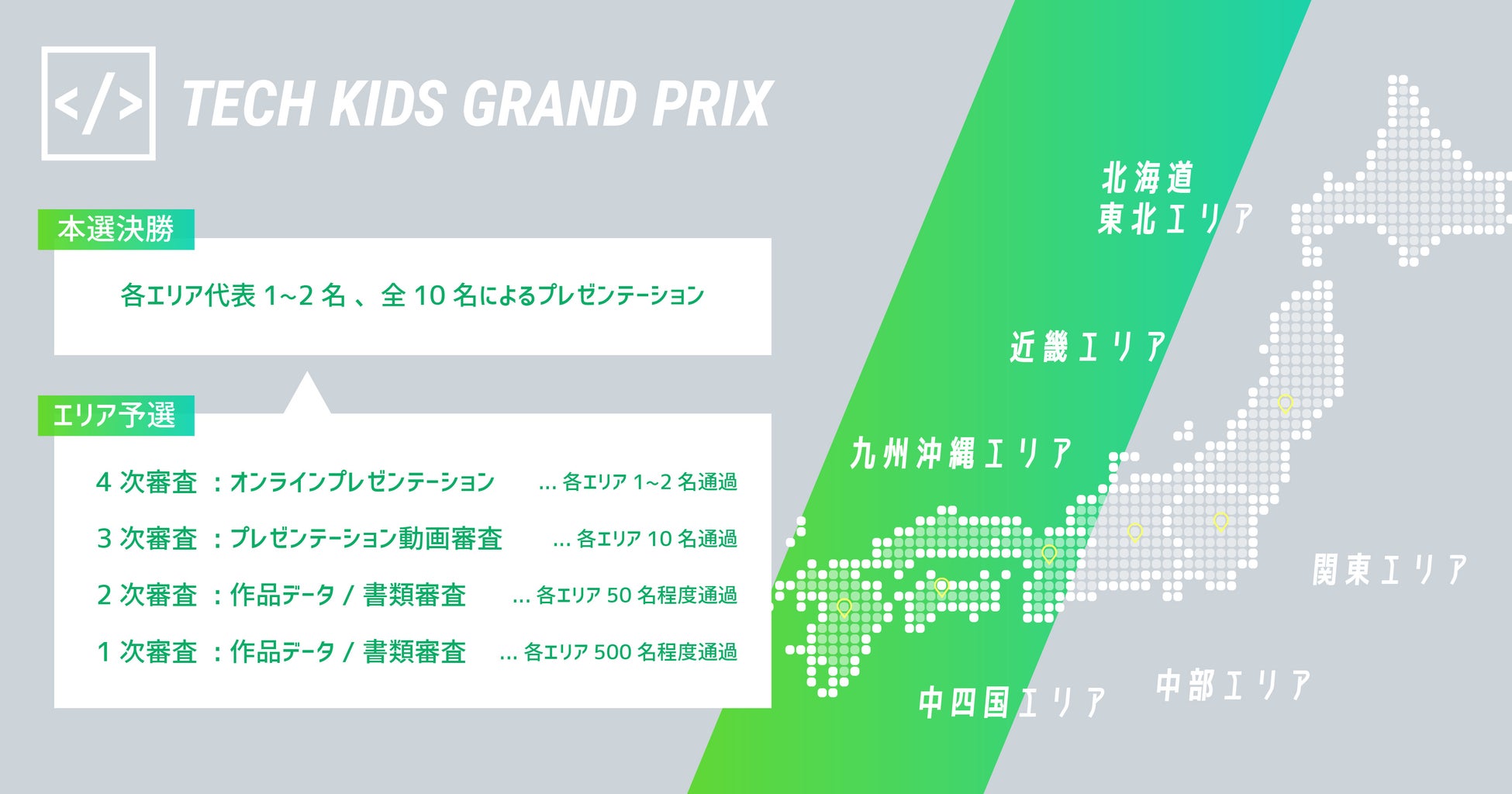 第7回大会となる2024年度大会は、CA Tech Kids とテレビ朝日の2社共同開催となり、7月1日(月)〜 9月30日(月)の期間中応募を受け付け、エリア予選1〜4次審査の後、2025年3月2日(日)に東京渋谷ヒカリエにて本選決勝を開催いたします。