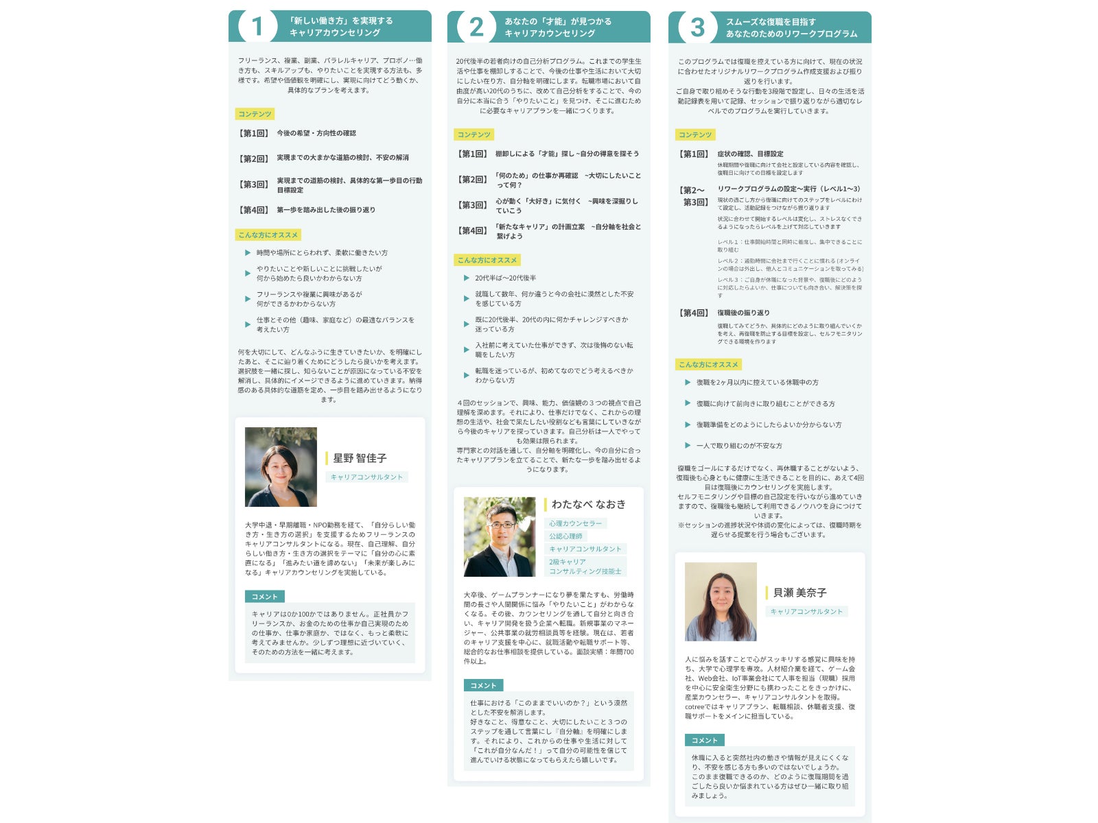 3つのプログラムをご用意。ぜひあなたにとって今、必要なプログラムを選択してください。