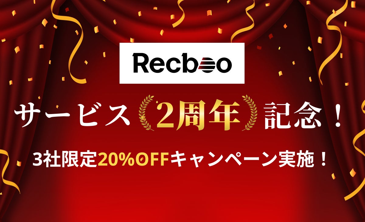 「Recboo」の各プランを通常料金から20%OFFでご提供(3社限定)