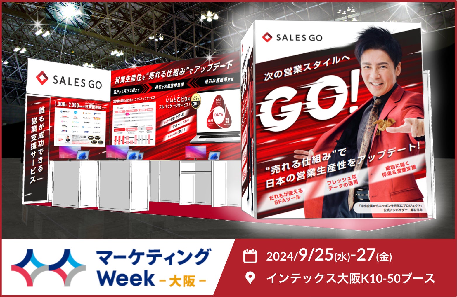 SFAとインサイドセールスで営業のデジタル化と売上アップを支援するSALES GO株式会社(所在地:東京都品川区、代表取締役社長:内山 雄輝、以下SALES GO)は、2024年9月25日(水)~27日(金)、インテックス大阪で開催される『マーケティングWeek-大阪- / 営業支援EXPO』に株式会社ラクス(本社:東京都渋谷区、代表取締役:中村崇則、以下ラクス)が提供する「配配メール」と共同出展いたします。ブースでは、最新のマーケ・営業支援ツールやノウハウ、お客様事例を多数ご紹介いたします。