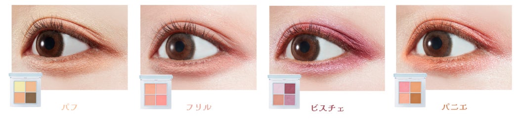 ふんわり発色と締め色を自由に使って明るい印象の目元に