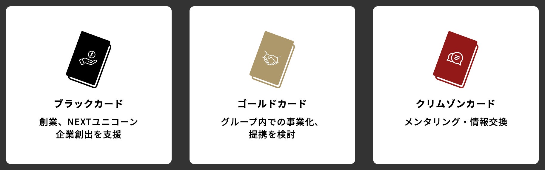 それぞれの支援内容の内訳は、ブラックカード(創業支援)7件、ゴールドカード(事業化・提携検討)14件、クリムゾンカード(メンタリング)28件です。