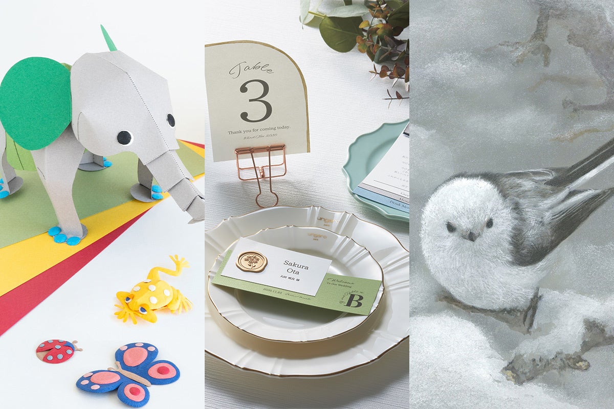 紙に厚みがあるのにスムーズに出力できるうえ、印刷直後に触ってもにじむこともなく、文字もはっきりプリントできます。トレンドをおさえた多彩な色で、装飾物が無くても、印刷するだけで、大切なウェディングにふさわしい上質なペーパーアイテムになります。