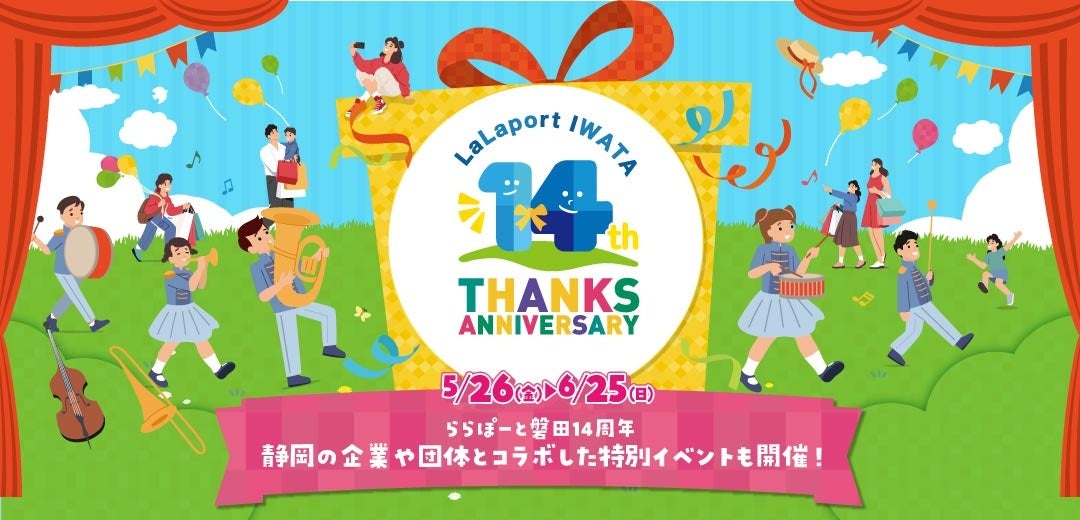 詳細ページ:https://mitsui-shopping-park.com/lalaport/iwata/campaign/14th_anniv/?utm_medium=other&utm_source=other&utm_campaign=anniversary14&utm_term=yk202305&utm_facility=0022