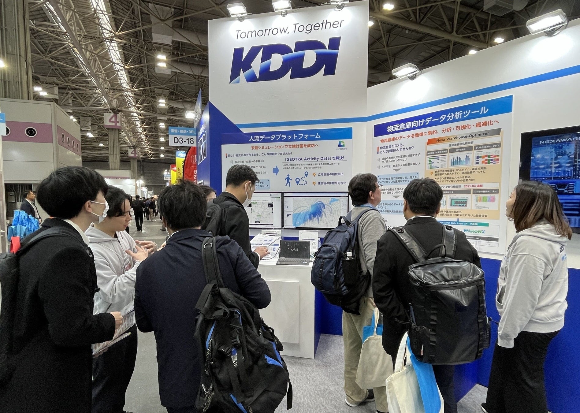 本展示では、KDDI株式会社(本社:東京都千代田区、代表取締役社長 CEO:松田 浩路)の展示ブース内にて、GEOTRAが提供する「GEOTRA Activity Data」および物流拠点の立地最適化・渋滞シミュレーションなどを活用したソリューションを紹介しました。