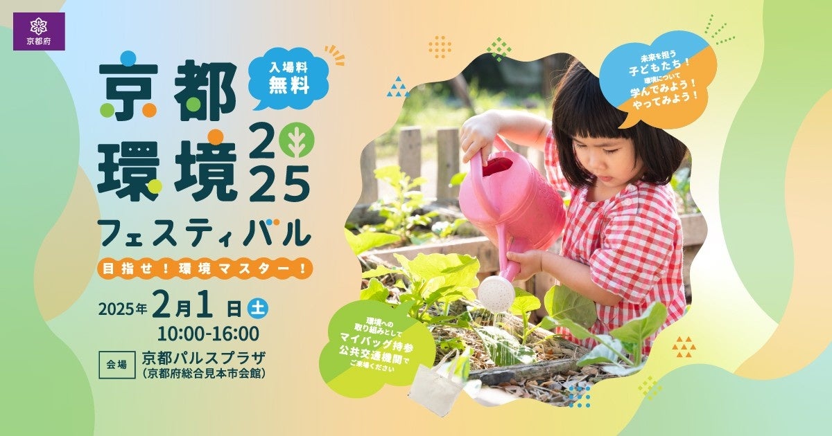 京都府内にて開催される、未来を担う子どもたちが環境について楽しく学び考えるイベント「京都環境フェスティバル 2025」を2月1日に京都パルスプラザで開催します。今年は小島よしお氏をゲストに招き、無料シャトルバスも運行します。