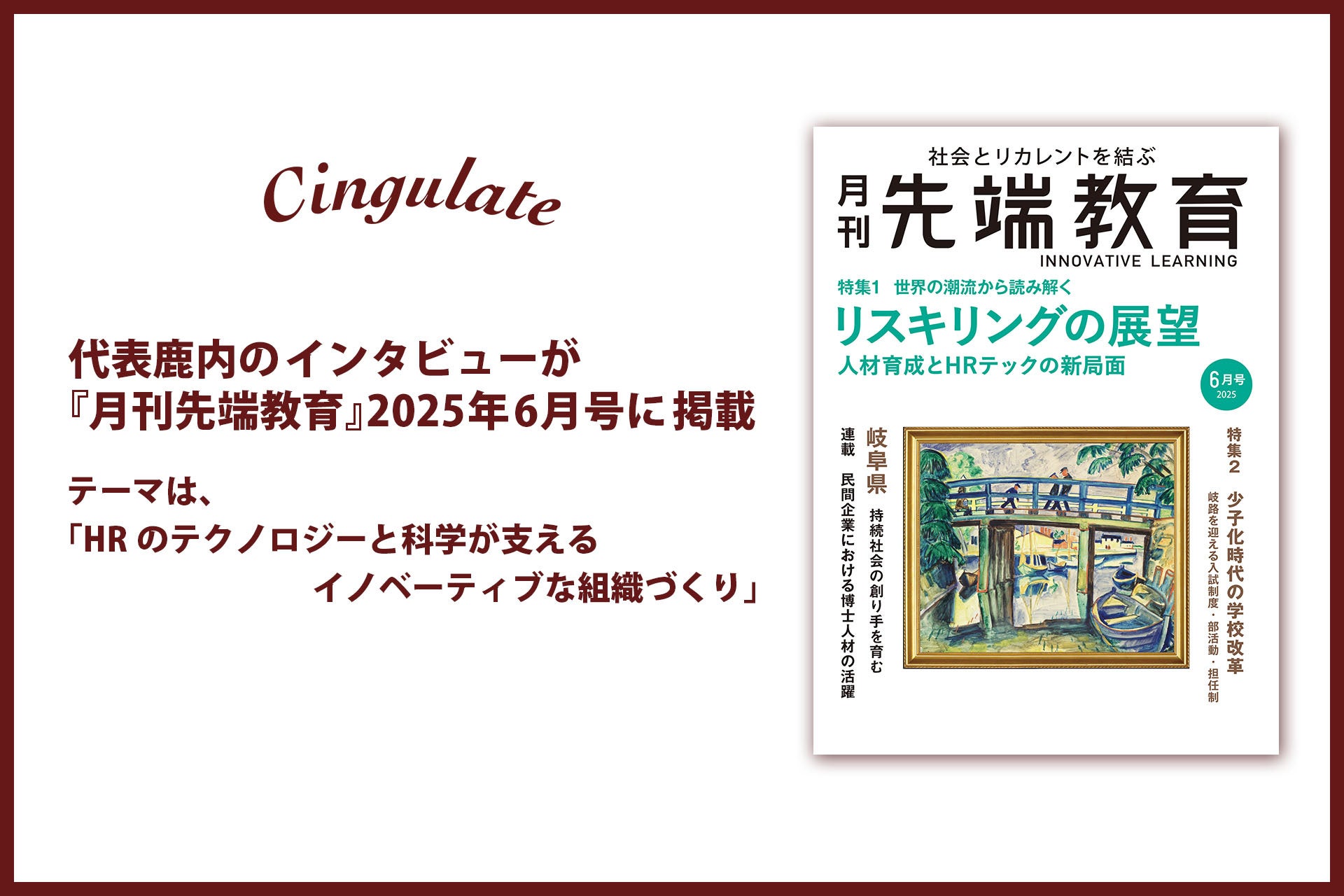 社会とリカレントを結ぶ教育専門誌「月刊先端教育」2025年6月号(発行:学校法人先端教育機構出版部、5月1日(木)発売)の特集1 ~世界の潮流から読み解く リスキリングの展望~ に、「HRのテクノロジーと科学が支えるイノベーティブな組織づくり」を解説したインタビュー記事が掲載されました。