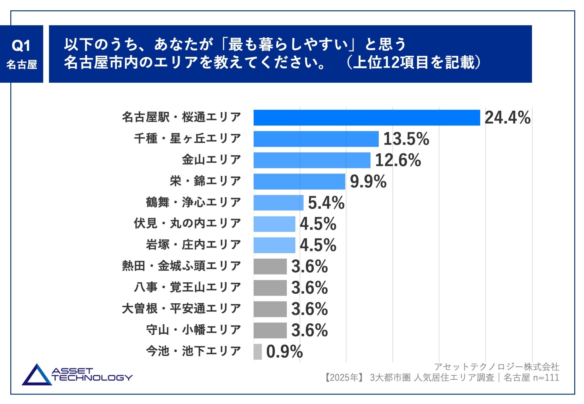 03|名古屋市の暮らしやすいエリア、第1位「名古屋駅・桜通エリア」(24.4%)