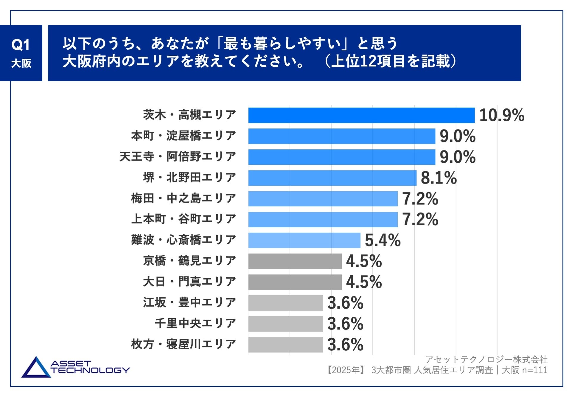 02|大阪府の暮らしやすいエリア、第1位「茨木・高槻エリア」(10.9%)