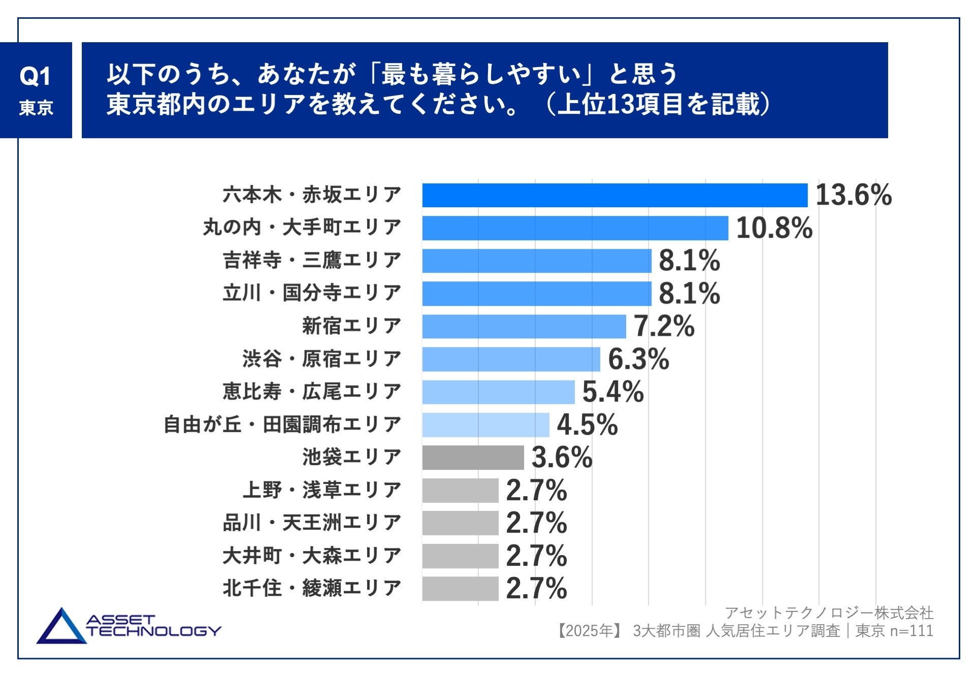 01|東京都の暮らしやすいエリア、第1位「六本木・赤坂エリア」(13.6%)