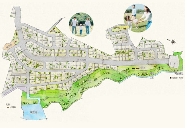 開発面積が広いからこそ叶うスケールメリットを活かし、ゆとりの街区道路計画や統一された街並みづくりに加えて、子どもたちが毎日遊べて住民の皆様のコミュニケーションの場にもなる憩いの公園も5か所に設けています。