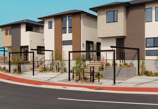 フィアスコート金剛TSUZUYAMAでは、個々の家だけでなく街全体の美しさとゆとりを感じられるよう外構計画にもこだわりました。各住戸にはシンボルツリーを植樹する他、プライバシーを守りつつ街並みを繋げる生垣やフェンスの高さ制限、夜の街並みを演出する街路灯計画…