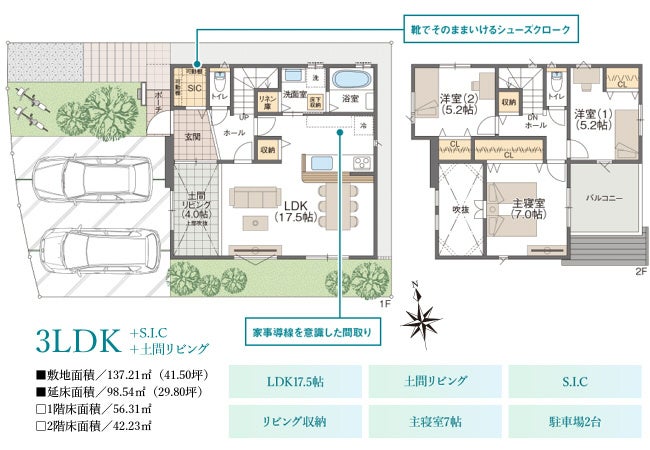 敷地面積 :121.84㎡〜188.25㎡(36.8坪~56.94坪)