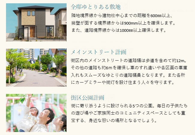 細やかな工夫を盛り込んだタウンプランニングで、住まう人々に永く愛される街づくりをとなっています。