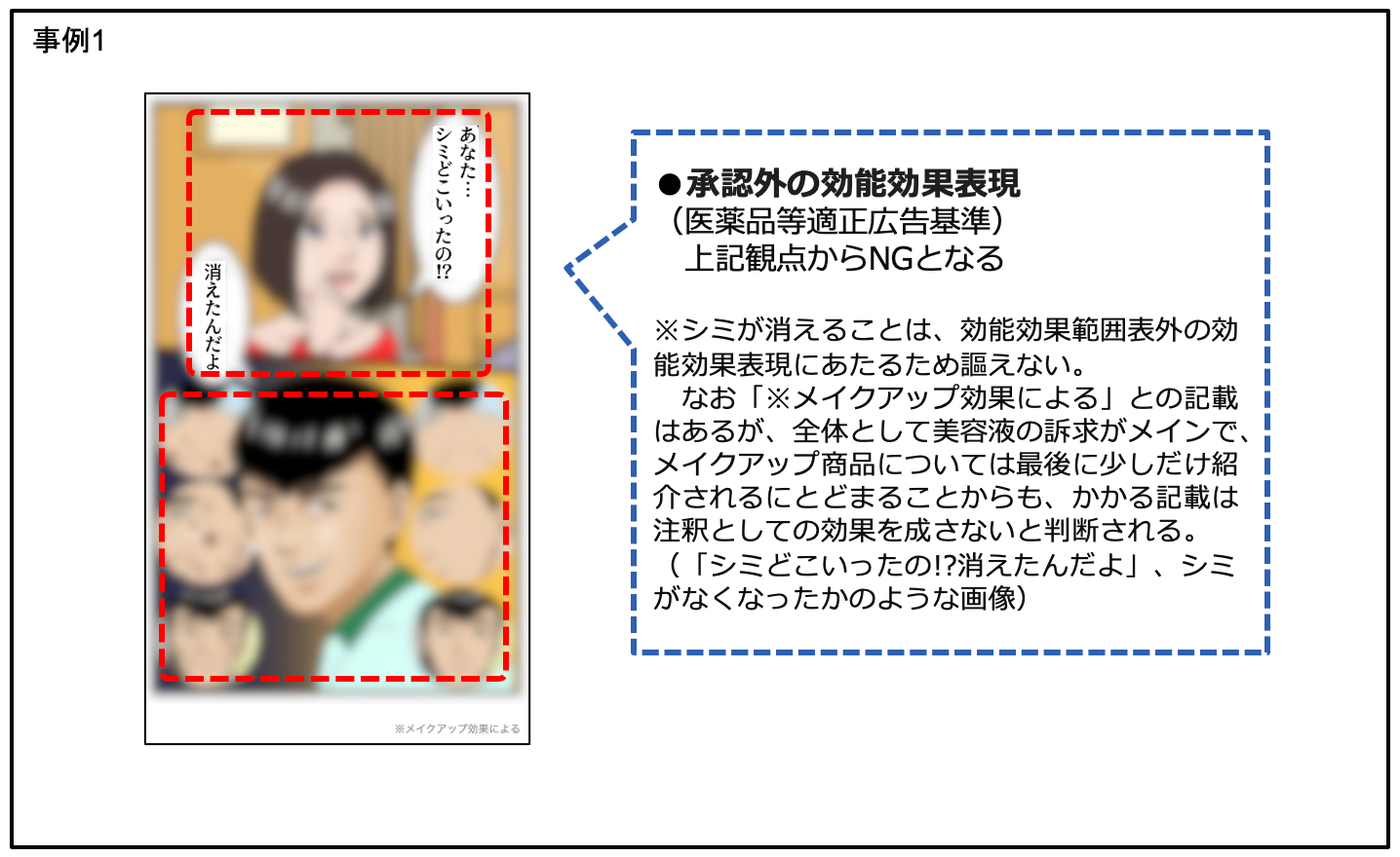 化粧品(薬用化粧品含む)に該当する商材について、医薬品等適正広告基準に違反している表現