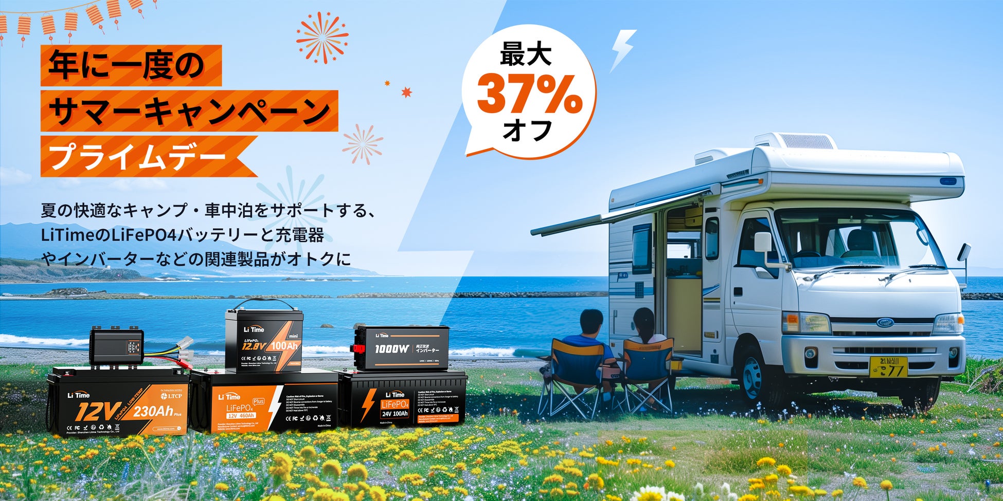 LiTime Japanは、2024年7月11日(木)~7月17日(水)まで、公式Amazon店においてブランド史上最安値のビッグセールを開催いたします。リン酸鉄リチウムイオンバッテリーとバッテリー充電器やインバーター、MPPTコントローラー等の関連製品はお得な価格でご購入いただけます。7月10日(水)より発売の新製品24V50AhのBluetooth機能付きリン酸鉄バッテリーも特別価格で販売開始いたします。